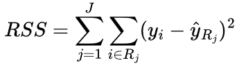 The algorithm selects the split that produces the largest reduction in RSS.